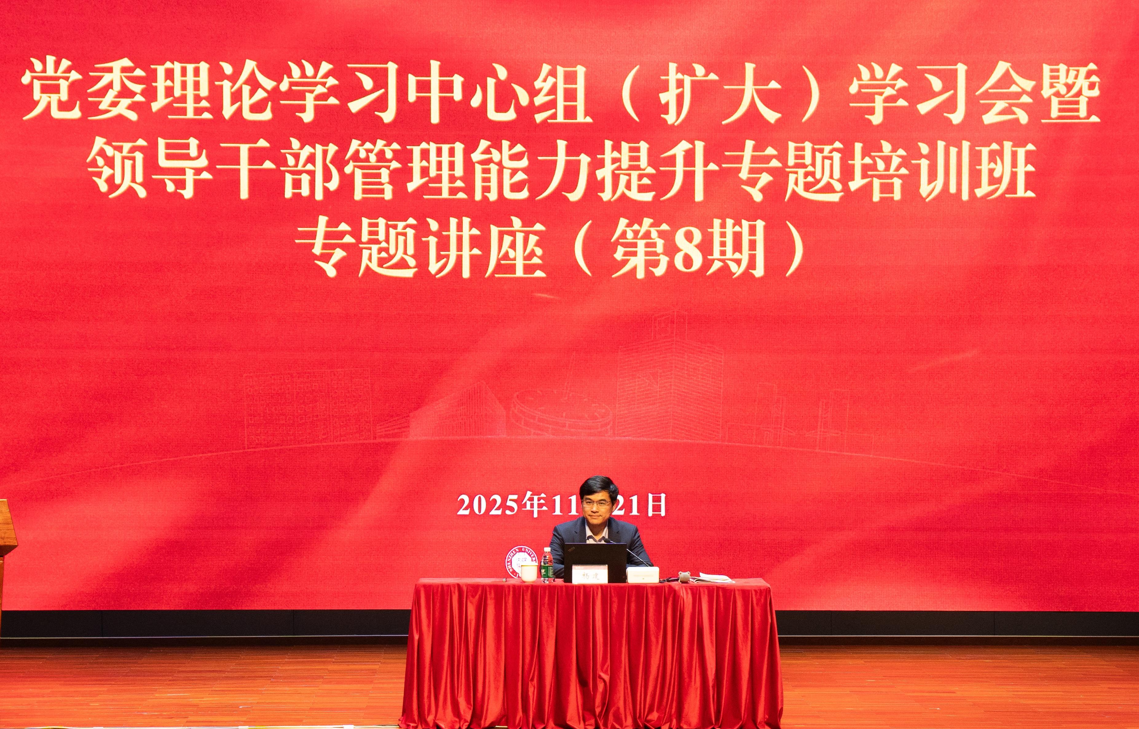 在粤海校区国际会议厅举办党委理论学习中心组(扩大)学习会暨领导干部管理能力提升专题培训班(第8期)。全体在家校领导出席,会议邀请深圳市社会科学院(深圳市社会科学联合会)党组成员、副院长(副主席)杨建解读党的二十届四中全会精神。学校全体中层干部、基层党支部书记、党建组织员、党务秘书、宣传员、统战人士代表等400余人参加培训。党委副书记吴报水主持会议。