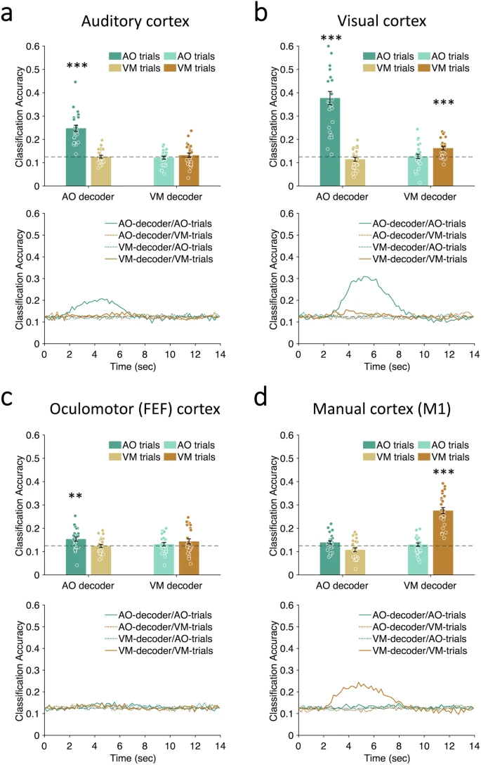 图3. 多重需求网络中单任务与双任务的神经解码时间序列研究采用多变量模式分析方法来追踪任务特异性的神经活动。