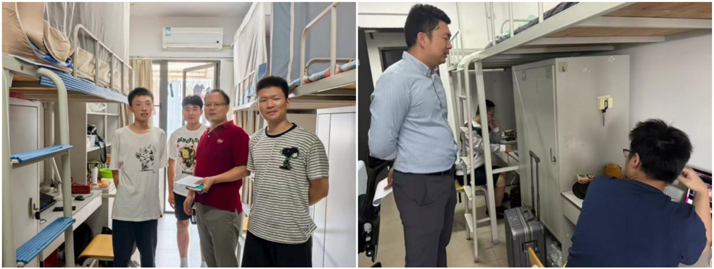 为进一步落实立德树人根本任务,服务学生全面发展,深入了解学生现实需求,2025年9月3日中午,医学部党委书记殷涛、党委副书记王嘉蔚和辅导员、学生党支部书记、班主任一起走进学生宿舍,与各个专业的本科生、硕博研究生同学们面对面交流,了解新学期思想动态、学习生活情况,并送上暖心关怀与殷切嘱托。