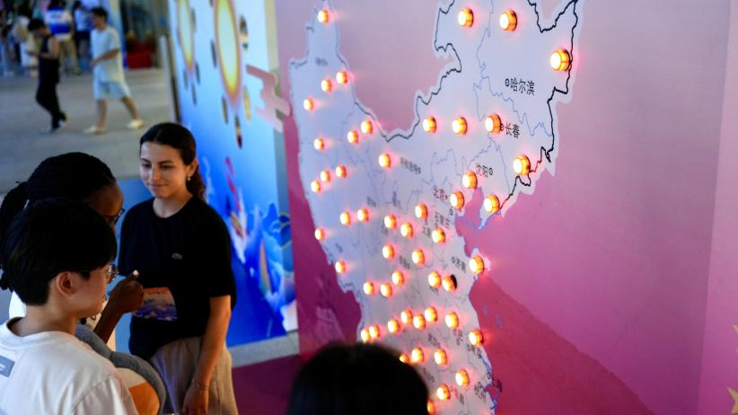 “点亮中国”祝福墙前,同学们认真写下对祖国的祝福。一张张“祖国生日快乐”的卡片贴满墙面,成了传递家国情怀的温暖载体,也让在场的外国友人直观感受到中国学子的赤子之心。