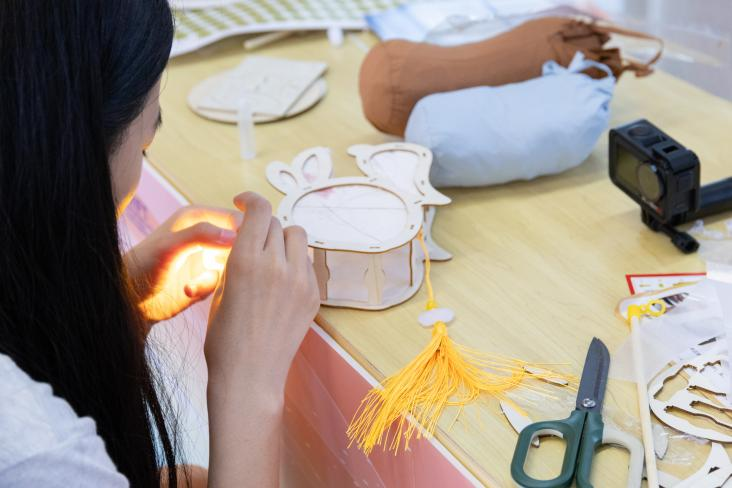 中秋宫灯制作区,中法学生共同点亮象征团圆的传统宫灯。光影交错间,中国学生讲解着中秋寓意,法国同学也分享起欧洲的节日习俗,小小宫灯照亮了文化交流之路。