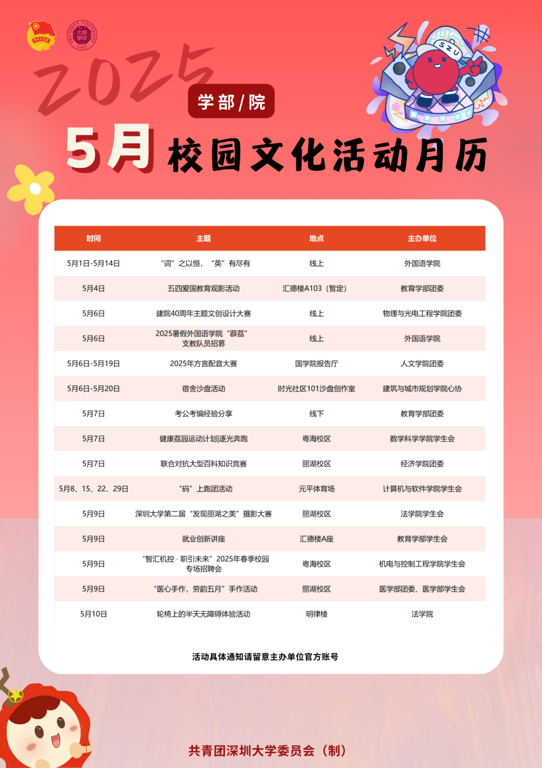 2025年5月|深大校园文化活动月历来啦